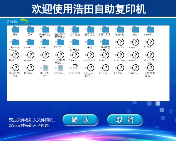 界面上有【身份證復印】【文件復印】【圖文復印】【U盤讀取】可選