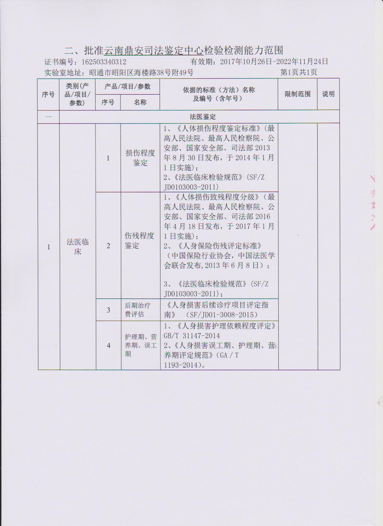 經(jīng)技術(shù)評審審核認(rèn)定的檢測項目(第一類業(yè)務(wù) 合計110項)
