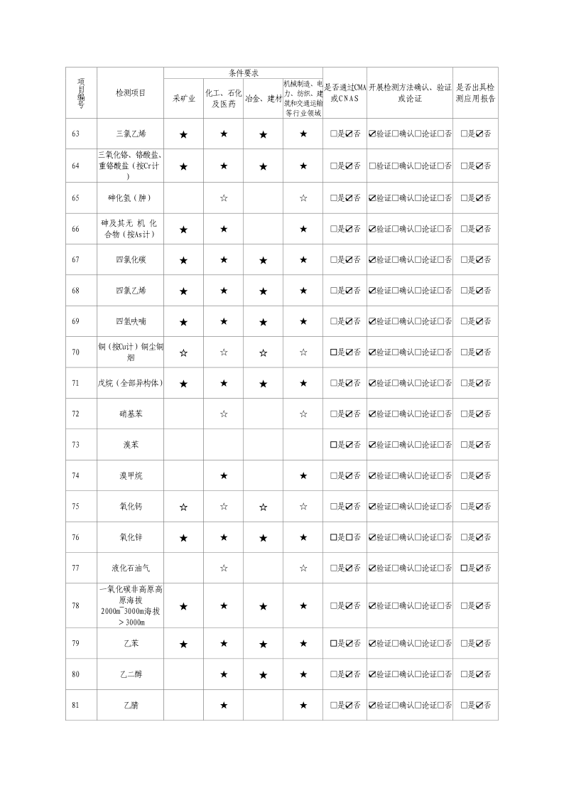 經(jīng)技術(shù)評(píng)審審核認(rèn)定的檢測(cè)項(xiàng)目(第一類業(yè)務(wù) 合計(jì)110項(xiàng))