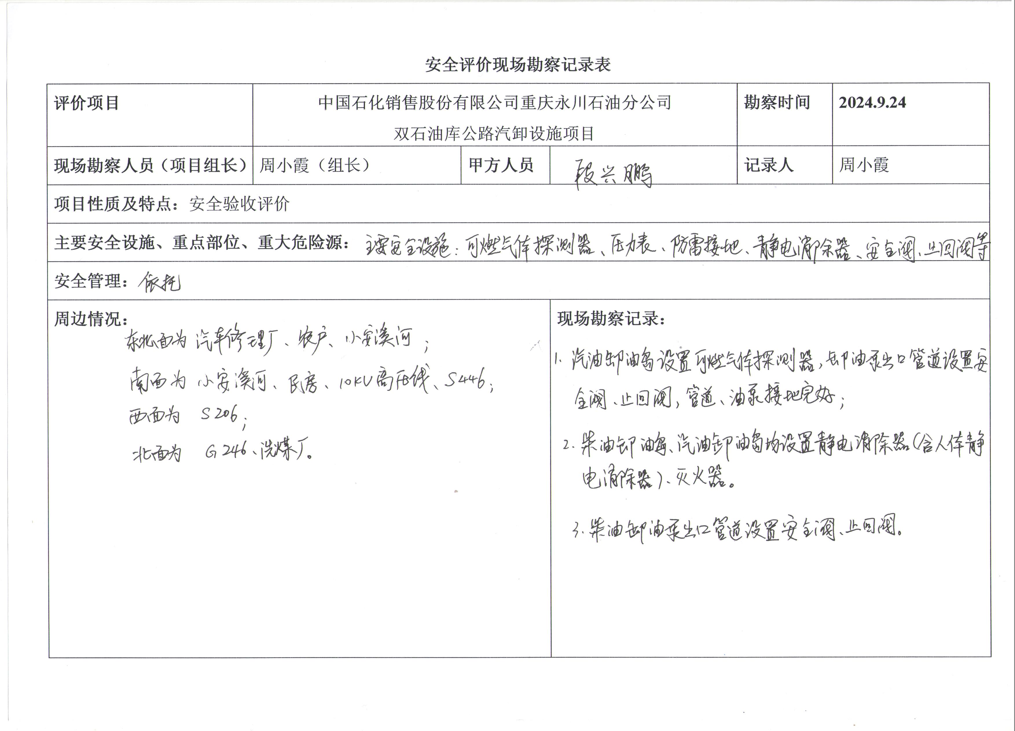 中國石化銷售股份有限公司重慶永川石油分公司雙石油庫公路汽卸設施項目安全驗收評價