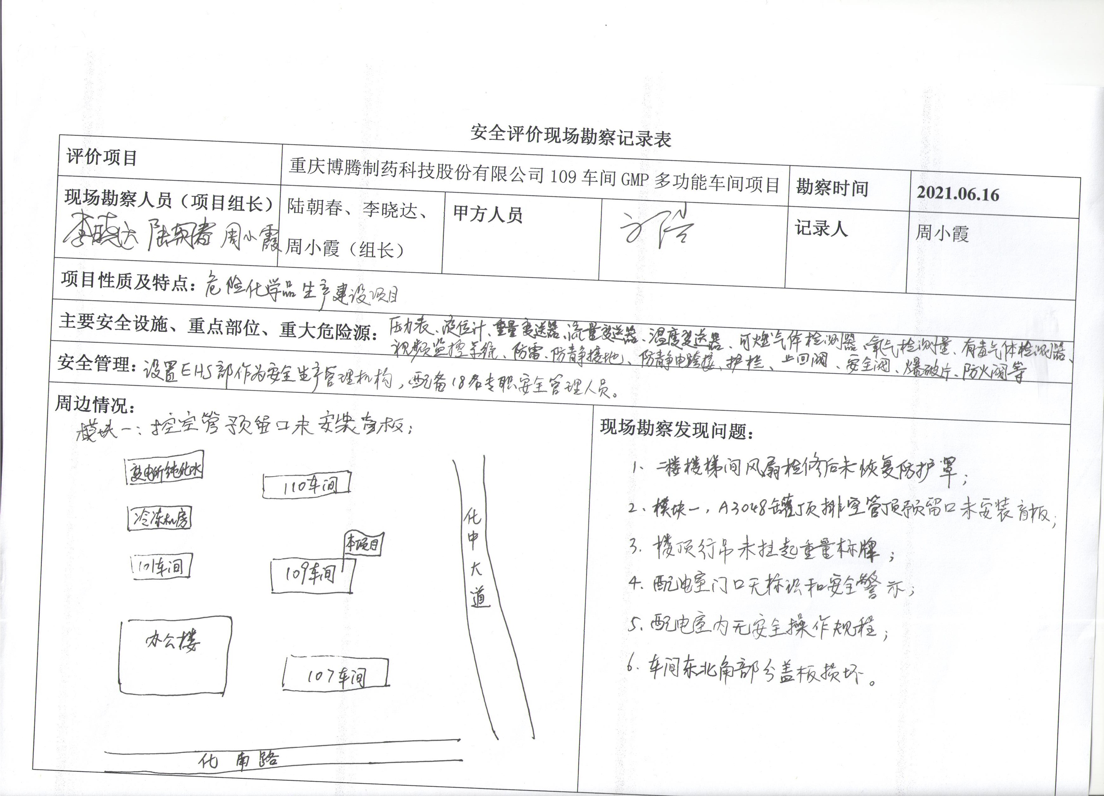 重慶博騰制藥科技股份有限公司109車間GMP多功能車間項目安全驗收評價